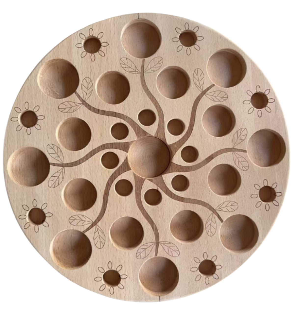 • Solid wooden mandala board with engraved tree design